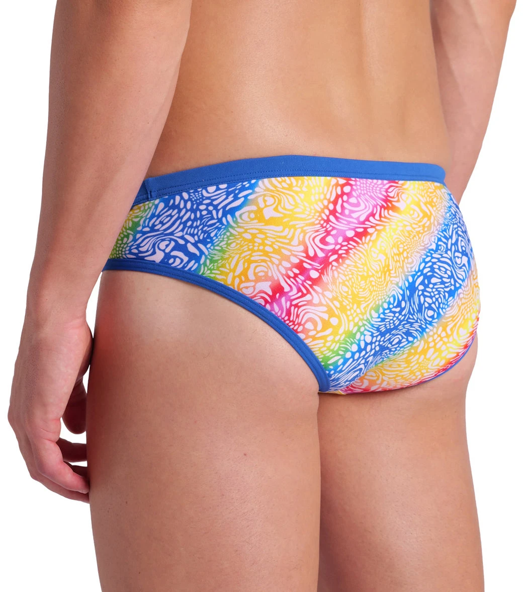 Enjoy the water and promote inclusion and diversity in the eye-catching, chlorine-proof, and high-performance arena arena Men’s Pride Brief Swimsuit from the Pride-inspired arena Let It Beat Collection. For whoever your heart beats, Let it Beat!