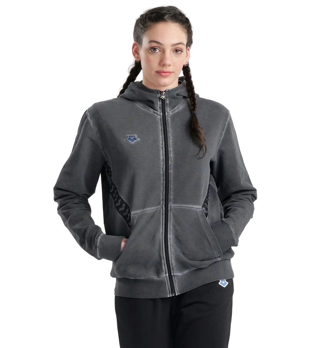 The arena Unisex Icons Front Hooded Zip Jacket is part of the Icons collection, combining streetwear trends with arena heritage designs.