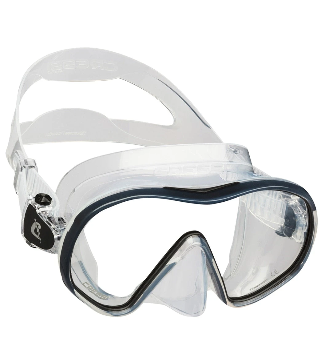 The Cressi F-Dual Frameless Scuba Mask is your new favorite. Designed with good visibility in mind and has low internal volume, which is great for freedivers.