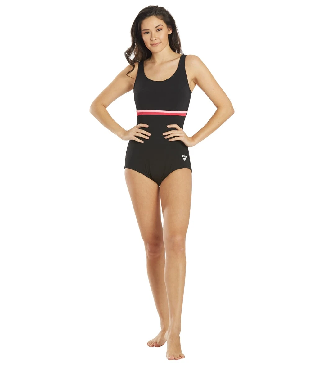 Get more coverage and a supportive fit in the FINZ Women’s Conservative Splice One Piece Swimsuit.