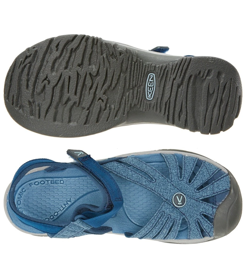 Be ready for any water adventure. The Keen Women’s Rose Sandal features a multi-directional lug pattern to enhance control and stability on any terrain. Designed specifically for a woman’s foot, this sandal provides all the support your wandering ways want with a hint of style.