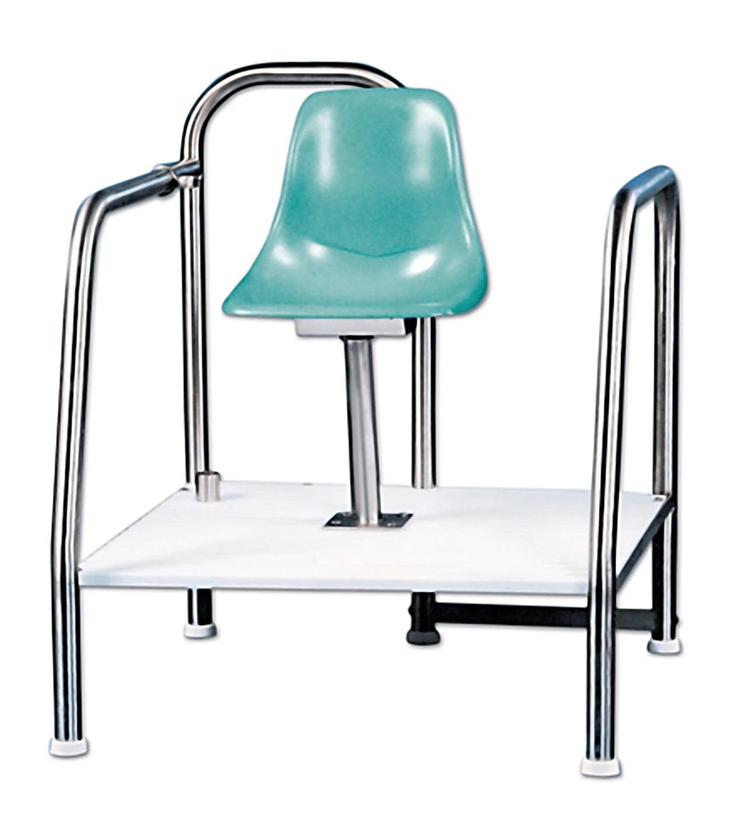 Features an elevated, 360 molded plastic swivel seat on a non-skid platform.