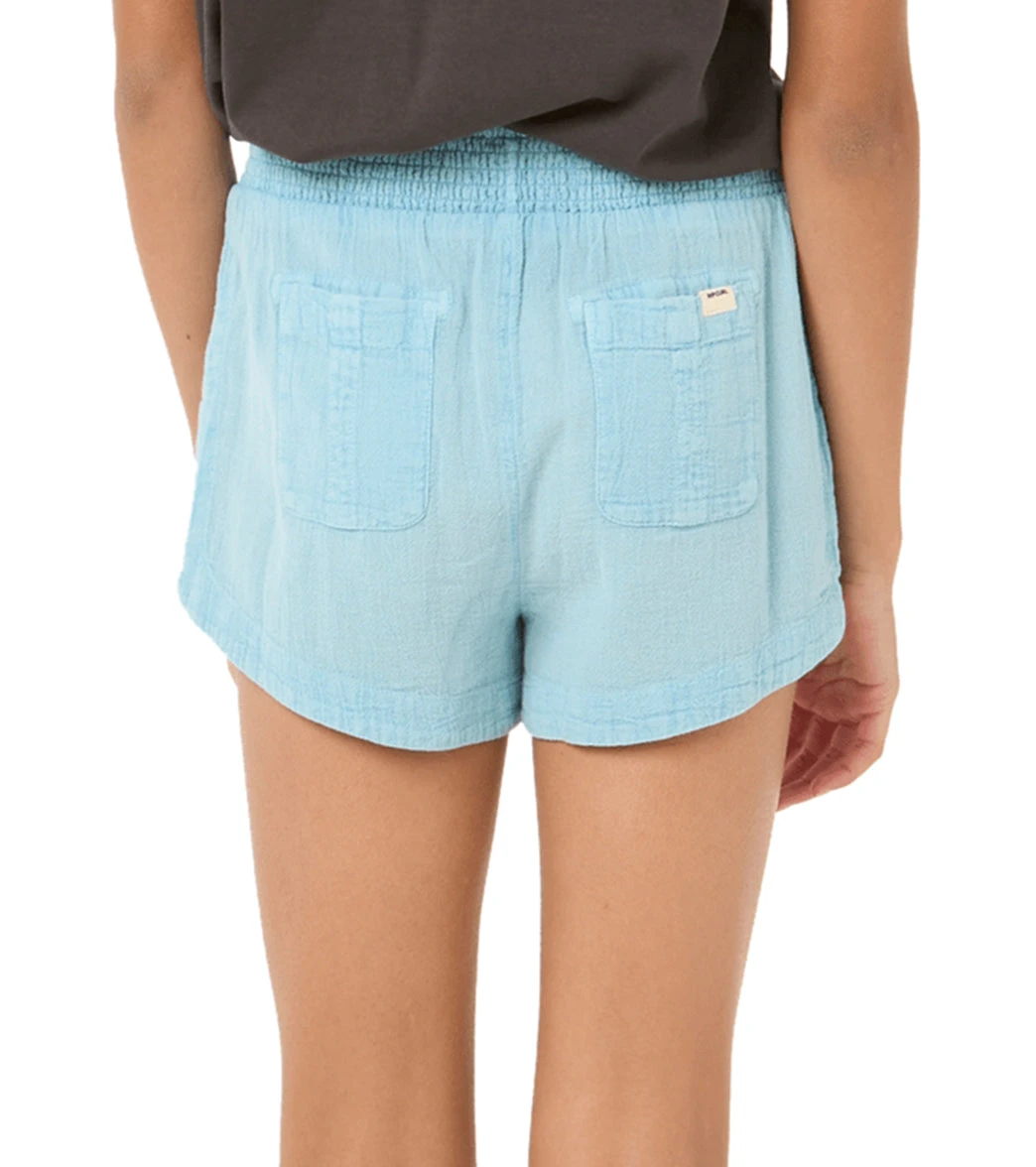 The Classic Surf Short offers a trendy length and comfortable fit. Made from cotton crepe poplin with a mineral wash, it features an elastic waistband and woven label on the back pocket for added style.