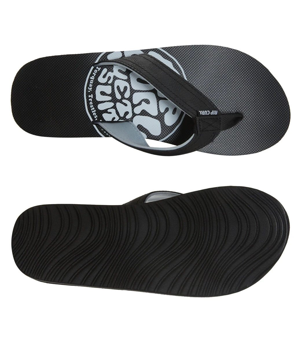 The Rip Curl Men’s Ripper Flip Flop is an epic men’s flip-flop made with a synthetic leather strap and soft padded liner. Featuring a lightweight and durable EVA outsole with swell tread for grip and finished with an epic wettie logo screen-printed footbed.