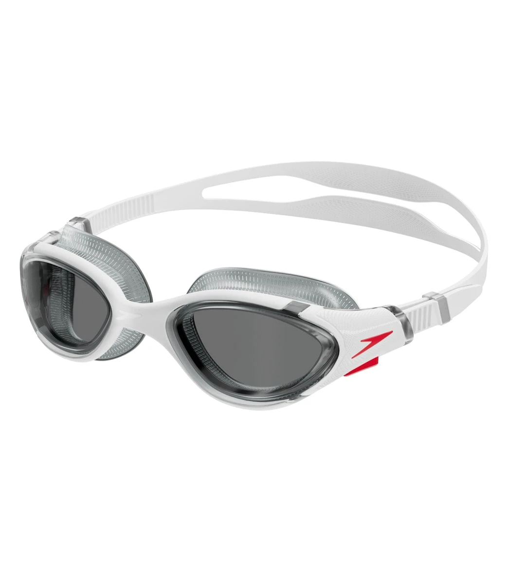 The Speedo Biofuse Re-Flex 2.0 Goggle is intricately designed for unmatched performance. Its flexible frame contours to the face for a snug fit that’s very comfortable. Swimmers will enjoy next-level visual clarity via crystal-clear anti-fog lenses with an extended peripheral view. A cushioned, comfortable and universal fit is made possible by super-soft seals with a ridged design that contours to the shape of the eyes. Adjustment is a breeze with a newly-patented push-button mechanism that allows you to customize the fit with greater precision.