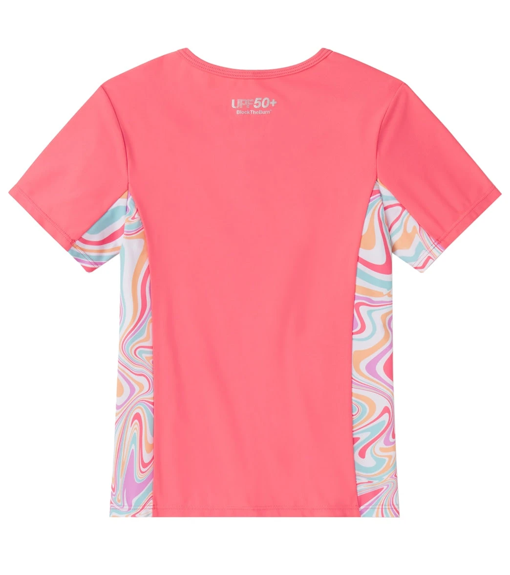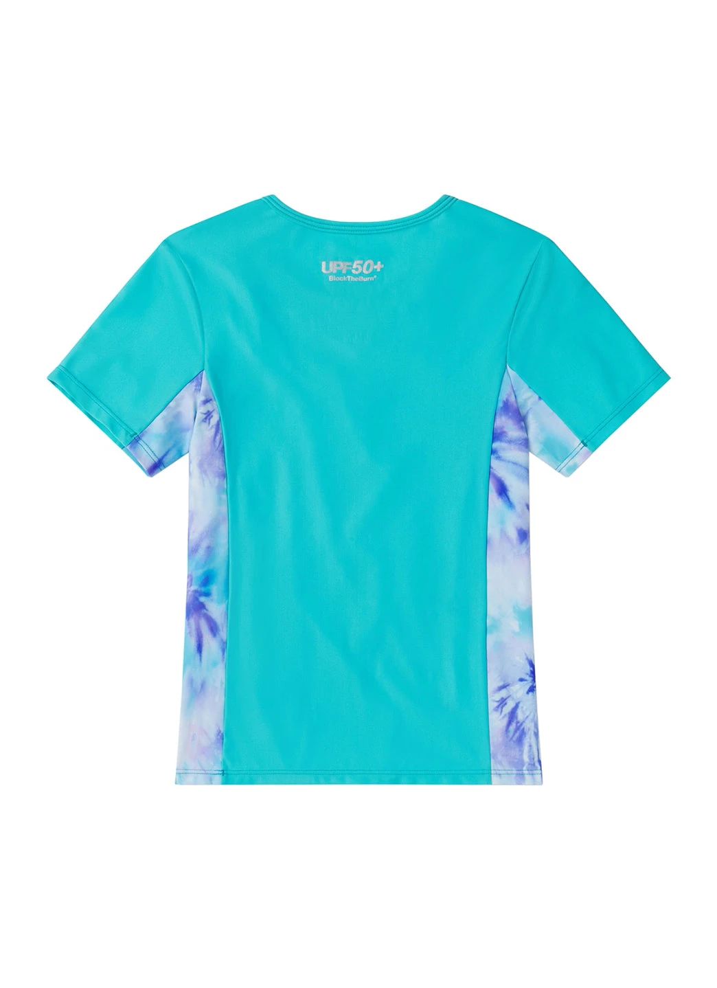 Keep your child protected with the Speedo Girls’ Short Sleeve Printed Splice Rashguard (Little Kid, Big Kid).