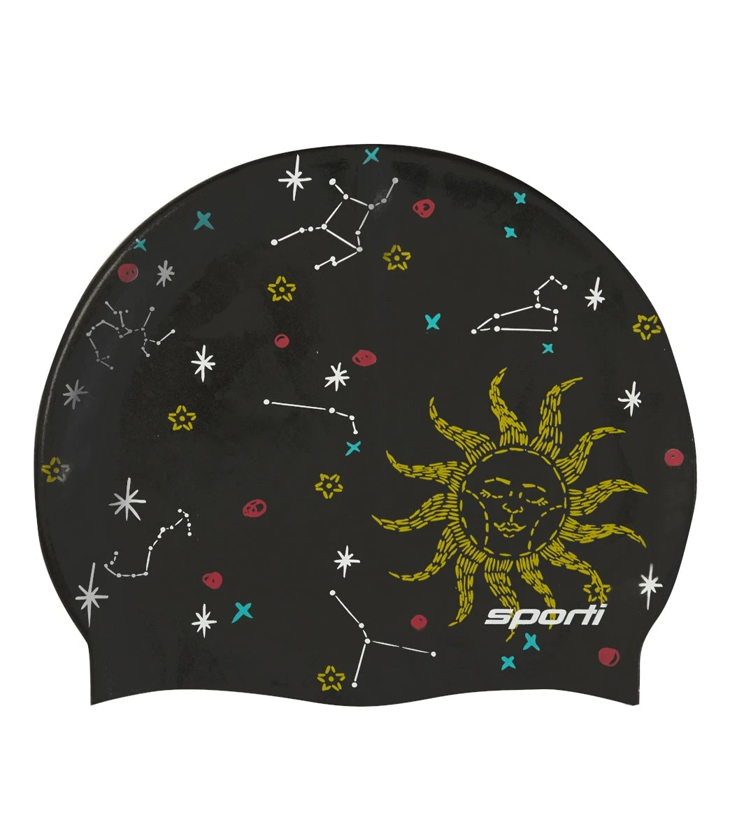 Channel the energy of the stars while wearing the Sporti Celestial Silicone Swim Cap. With a streamlined shape to reduce drag and a snug fit to safeguard your hair from chlorine, this cap offers easy wear and removal, a non-slip grip, and ultimate comfort. Plus, wearing a swim cap aids in tangle free hair and goggles that stay put so you can fully enjoy and focus on the lap ahead.