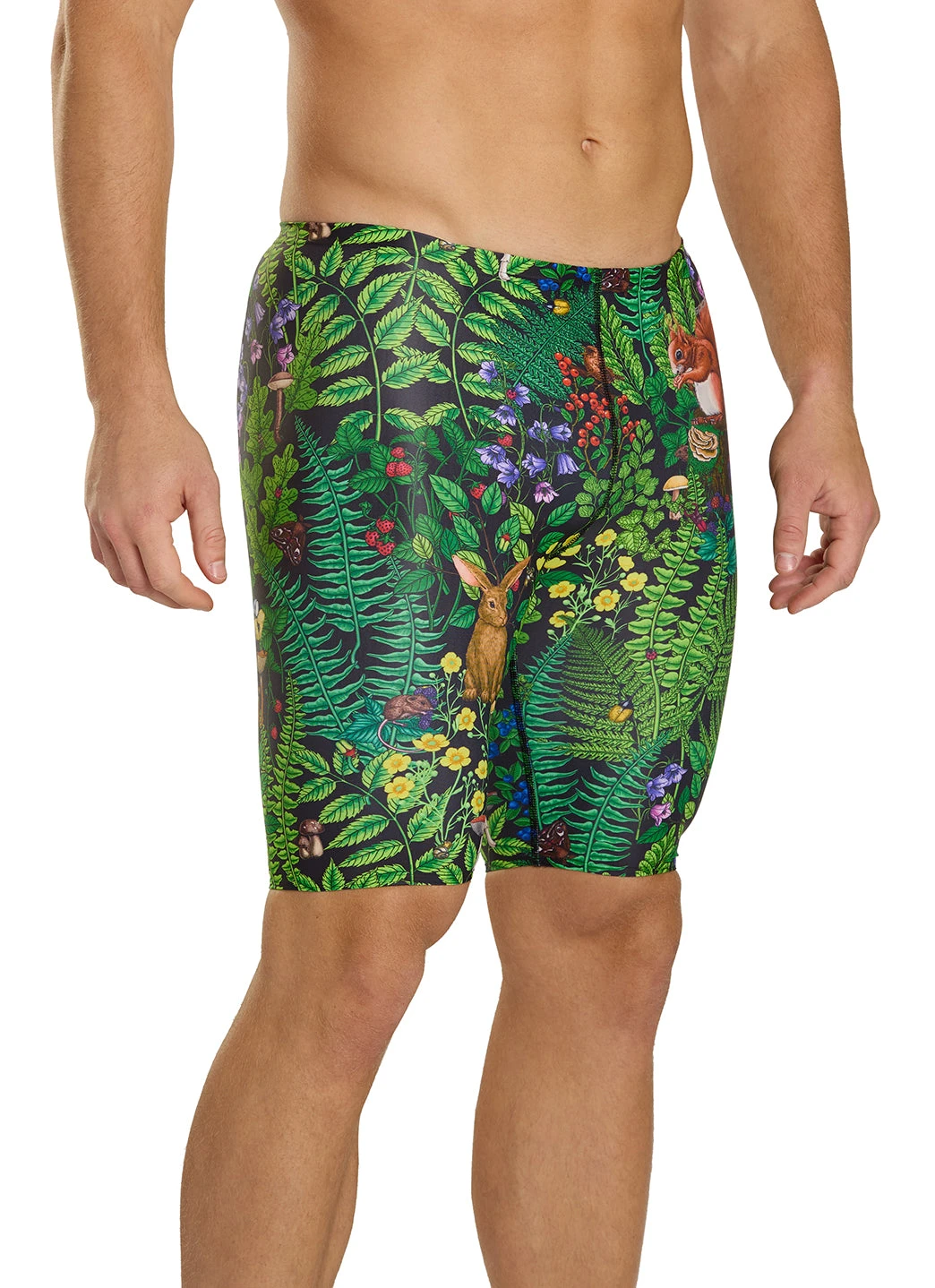 Escape into an enchanted forest with this fun print from Sporti! Made of durable, chlorine-resistant fabric, this swimsuit is made to last while providing complete sun protection. Suit up for swim practice or playtime at the beach in the Sporti Forest Hideaway Jammer Swimsuit.