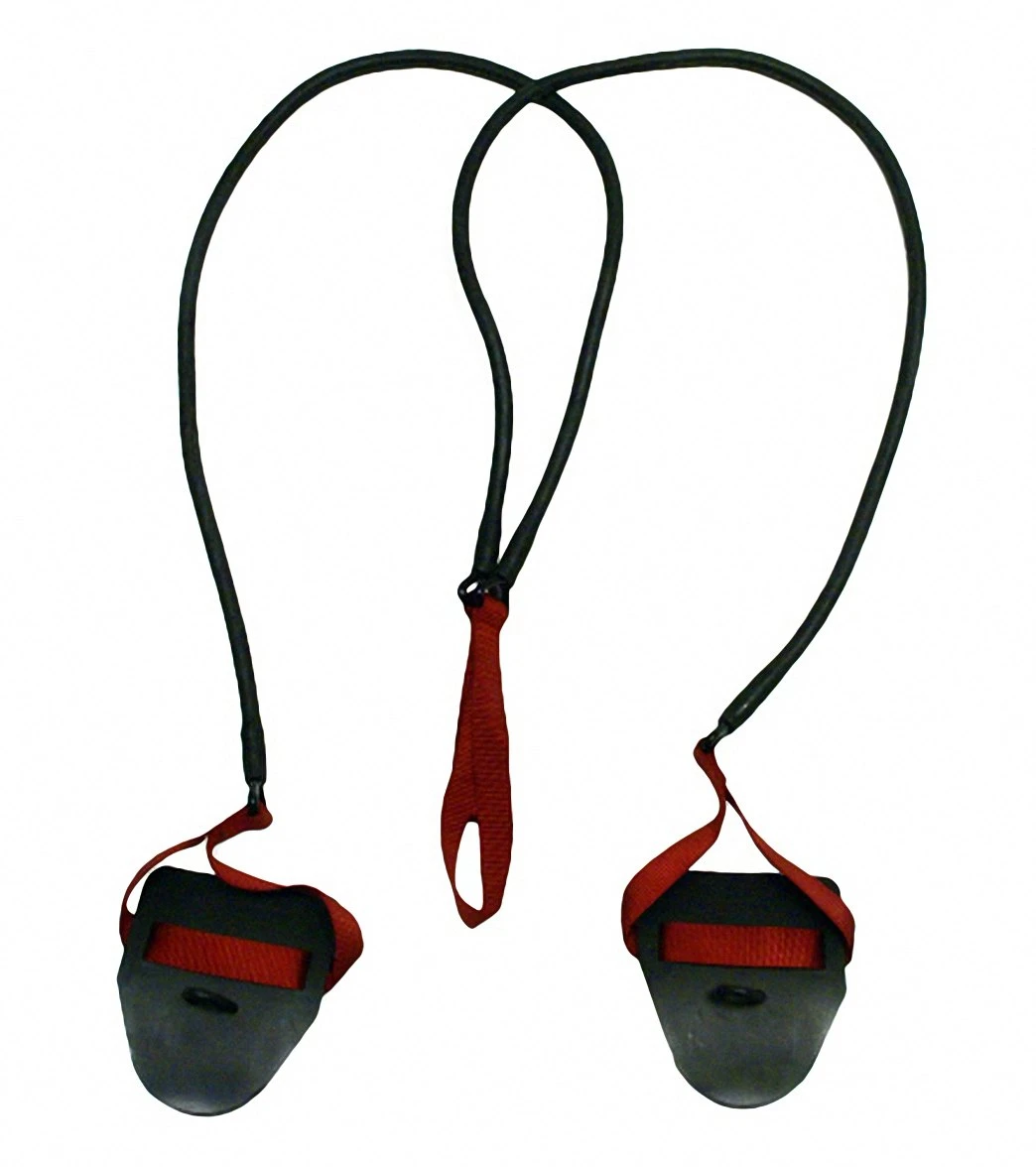 Designed to emulate the feel and resistance of a swimming pull, StrechCordz with Paddles help you improve your strength and flexibility, reduce your IM times and train your hands to remain in a flat, relaxed position. Used by the U.S. Olympic Swim Team and swimmers worldwide.