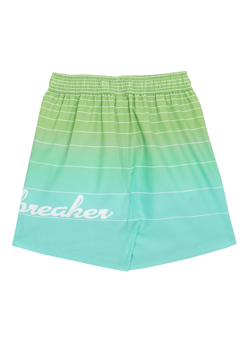 The Wavebreaker Boy’s Ombre Stripe Swim Trunks are classic swim trunks with a striped, blue ombre pattern. These trunks go on and off easily for super comfortable, all-day wear.